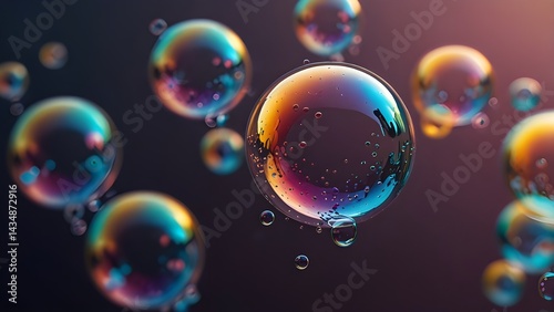 Dreamy Iridescent Soap Bubbles Floating on Gradient Background
