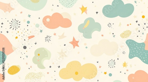 dreamy, pastel, geometric, composition, floating, abstract, shape, cream, background, delicate, colours, palette, including, mint, green, cloud, powder, blue, curve, ballet, pink, flower, butter, yellow, peach, scattered, soft, dot, organic, flowing, form, gentle, rounded, edge, irregular, curved, element, playful, minimal, pattern, soothing, childcare center, aesthetic, balanced, shape, distribution, modern