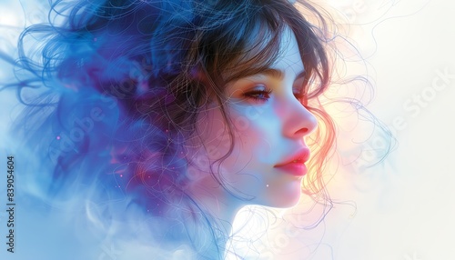 dreamy, portrait, woman, blue, orange, light, face, girl, female, beautiful, passion, power, modern, surreal, peace, print, graphic, bold, black, heat, quest, fashion, hope, design, soul, aura, artwork, spirit, fire, vibrant, love, home, trend, red, abstract, white, style, vibe, blaze, strength, thinks, flames, yellow, man, decor, poster, experiencing, smoke