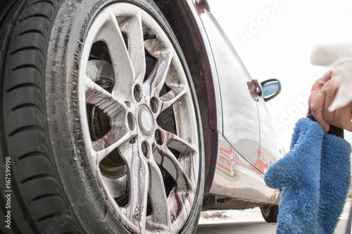 wheel, car, tire, rim, dirty, dirty, bathe, clean, transport, cultivate, transport, glove, automobile, detail, cleaning, mechanic, restoration, care, garage, dirt, clean, sponge, car