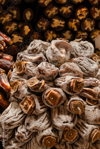 dried Diospyros kaki, the Oriental persimmon, Chinese , Japanese or kaki persimmon, is the most widely cultivated species of the genus Diospyros. sales. selective focus