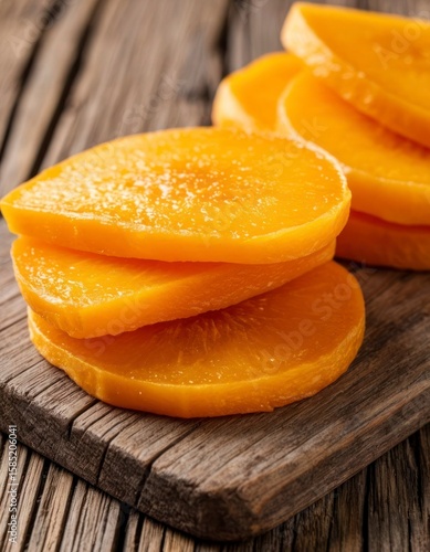 Dried Mango Slices on a Wooden Board
