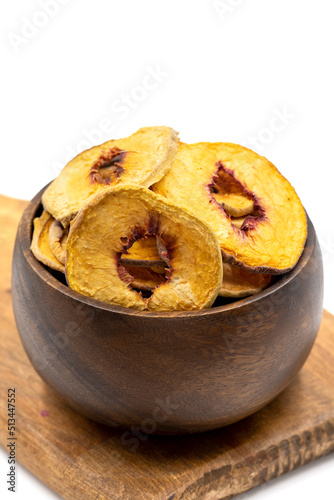 Dried peach slices. Sliced dry peach isolated on white background. Sun-dried fruit. Close up
