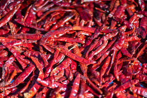 Dried red chilli, food ingredient. Red dry chilli texture background.