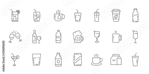 drink, glasses, alcohol, cocktail, icon, bar, beverage, juice, set, symbol, vector, wine, bottle, hot drink, line, outline, beer, champaign, cup, illustration, eatery, thin, water, pictogram, tea, mug, food, soda, signs, cold, martini, menu, design, hot, isolated, white, fresh, ice, brandy, cognac, flat, summer, barrel, celebration, whiskey, party, refreshment, pub, collection
