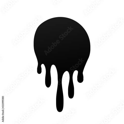 Drip paint. Ink stain. Drop melt liquid isolated on white background. Splash of chocolate, oil, blood. Black graffiti. Splatter syrup, candy sauce, caramel. Color easy to edit. Vector illustration