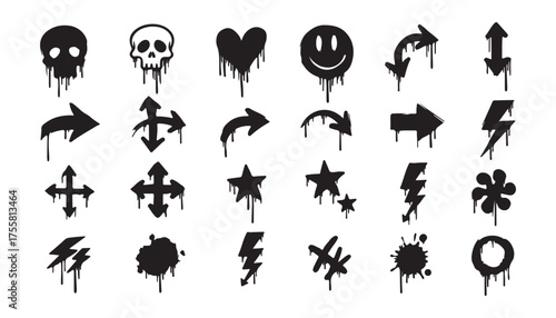 Dripping Skull Graffiti Icon Symbol: Urban Art Black Silhouette Graphic for Streetwear Design and Edgy Aesthetic