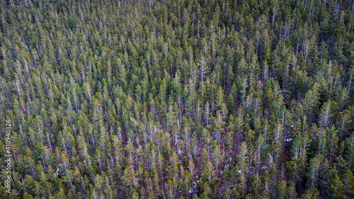 Drone photo of pine tree forest