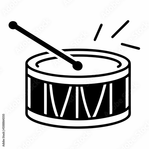 drum, drumstick, musical instrument, music, percussion, rythm, beat, sound, band, orchestra, musician, entertainment, performance, icon, symbol, vector, illustration, black-and-white, simple, outline, graphic, design, minimalist, art, equipment, single object, clip art