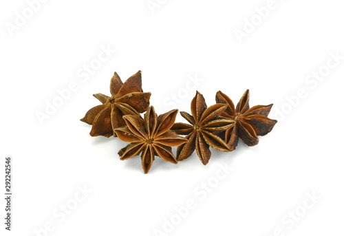 dry star anise fruits isolated on white. Star anise spice fruits and seeds isolated on white background closeup