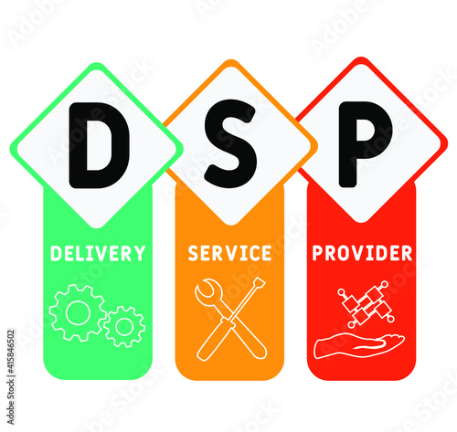 DSP - Delivery Service Provider acronym. business concept background. vector illustration concept with keywords and icons. lettering illustration with icons for web banner, flyer, landing page