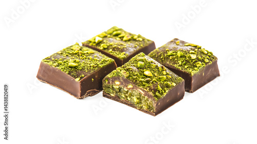 Dubai chocolate with green kataifi and pistachio paste isolated on a white background