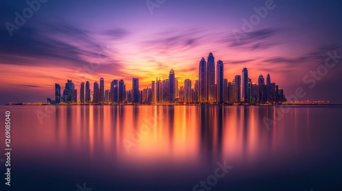 city landscape, sunset, dubai, marina, skyline, building, tower, water, horizon, urban, architecture, twilight, evening, night, light, colours, scene, view, panorama, image, photo, picture, photo, seascape, coastline, modern, metropolis, city landscape, city, structure, skyscraper, real estate, development, construction, design, aesthetic, beautiful, travel