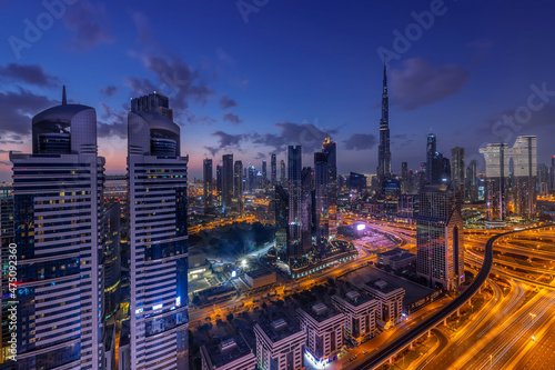 Dubai skyline with beautiful city close to busiest highway of Dubai