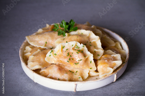Dumplings, filled with cabbage. Pierogi, varenyky, vareniki, pyrohy - dumplings with filling, popular dish in many countries