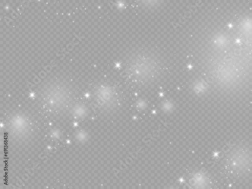 Dust sparks and stars shine with a special light. Christmas light effect. Glittering particles of magic dust.Vector sparkles on a transparent background.