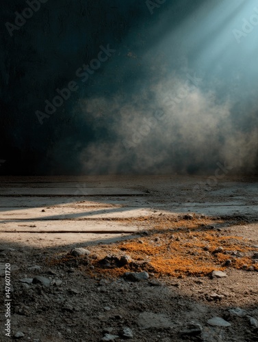 floor, dust, sunlight, beam, smoky, atmosphere, gritty, texture, industrial, mood, dramatic, light, shadow, ground, decay, rustic, vintage, grunge, dark, photo, image, background, scene, composition, aesthetic, art, design, commercial, product, stock, photo, picture, optical, graphic, element, detail, style, tone, colours, shade, contrast