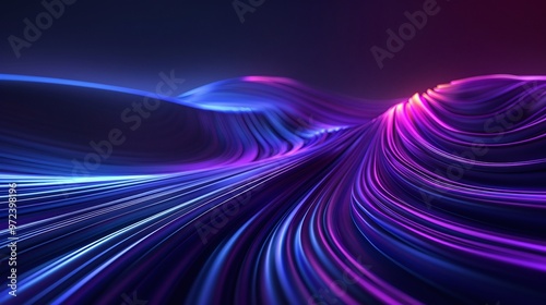 Dynamic abstract lines create a vibrant wave pattern, blending colors in a futuristic design suitable for various digital projects. Product presentation background.