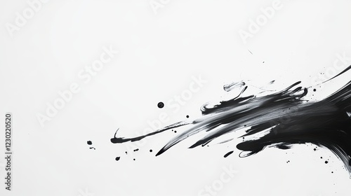 Dynamic black paint splashes on white , abstract art background texture artistic