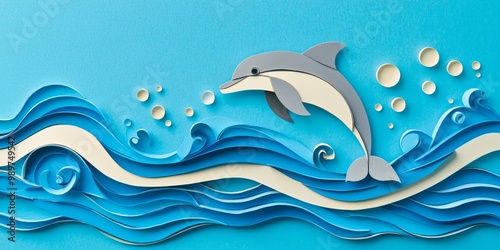 dolphin, jumping, wave, marin, life, paper, art, craft, blue, grey, light, midday, dynamic, pose, water, splash, ocean, artistry, design, layer, creativity, nature, underwater, aquatic, playful, silhouette, scenery, coast, animal, artwork, fantasy, children, decor, sea, environment, oceanic, collage, movement, representation, coastal, serene, textured, visual, scene, jump, craft, creative, art, technique