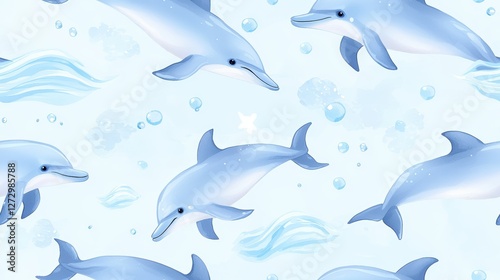 Dynamic dolphins in a seamless ocean seam pattern, vibrant marine wildlife scene