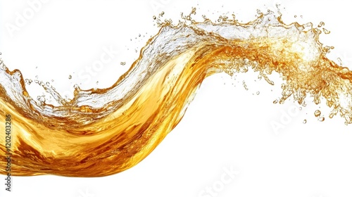 liquid, splash, wave, motion, texture, water, beverage, energy, fluid, gold, transparent, fresh, drink, purity, nature, abstract, fluidity, glossy, waveform, swirl, aesthetic, creativity, surface, droplet, refreshing, natural, vibrant, shiny, movement, artistic, background, bright, isolated