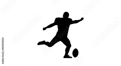 Dynamic football player silhouette kicking ball, ready for action and perfect for sports branding or team spirit designs, a powerful visual statement