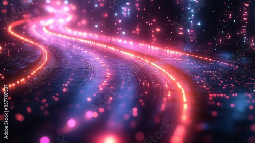 Dynamic Glowing Pathway in a Vibrant Digital Environment