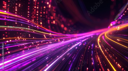 Dynamic high-speed data network with slick, glossy, and glowing lines of light
