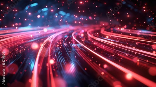 Dynamic high-speed data network with slick, glossy, and glowing lines of light