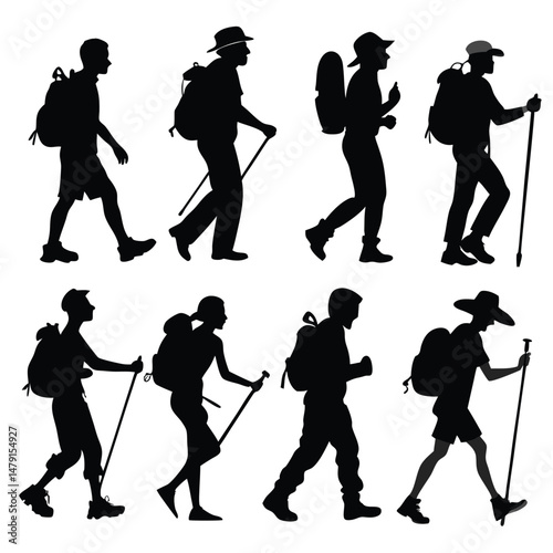 Dynamic Hiking Poses in Clean Vector Art