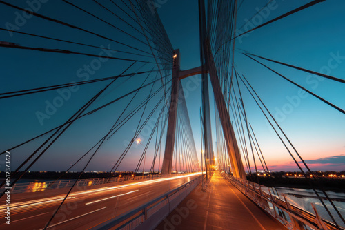 suspension, bridge, twilight, light, trail, modern, dynamic, impressive, architecture, urban, transportation, long, exposure, evening, night, city, sky, water, movement, traffic, abstract, cable, structure, civil, engineering, beautiful, dusk, dark, illuminated, glow, vibrant, future, perspective, angle, wide, low, horizon, peaceful, dramatic, landscape, tranquil, line, pattern, connection, crossing, overpass, highway, road
