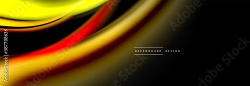 Dynamic motion abstract background. Color blurred stripes on black. Wave liquid lines poster. Vector illustration