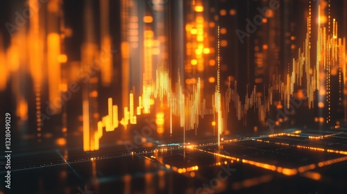 Dynamic Orange Data Visualization Illuminating Market Trends and Financial Analytics Through Captivating Patterns and Growth Indicators in a High-Tech Environment