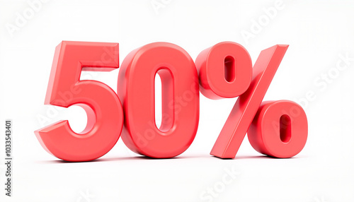 Dynamic Red 3D '50 Percent Off' Text for Eye-Catching Sales Promotions