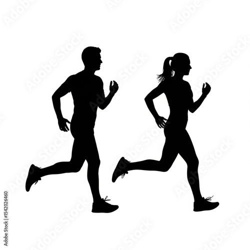running, jogging, sprinting, marathon, athlete, male, female, couple, silhouette, cartoon, exercise, fitness, sport, active, dynamic, speed, training, physical exercise, health, motion, figure, human, body, minimalist, graphic, vector, icon, symbol, design, pace, endurance, action, cardio, competition