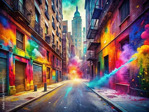 Dynamic Spray Paint Art: Urban Street Graffiti Double Exposure Stock Photo