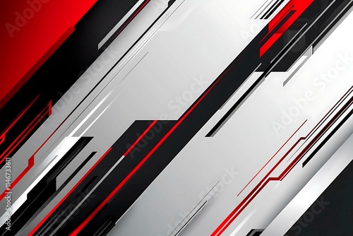 Dynamic technology-inspired abstract background with sharp red, black, and silver lines, creating a sleek and futuristic digital design.