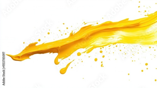 dynamic yellow paint brush stroke with textured details and artistic splatters isolated on clean white background for graphic design projects