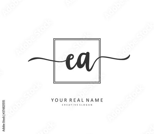 E A EA Initial letter handwriting and signature logo. A concept handwriting initial logo with template element.