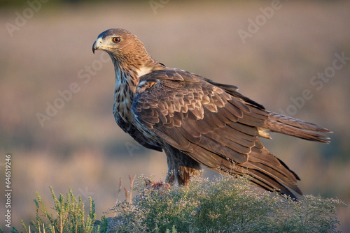 Eagle chick walking on grassy meadow