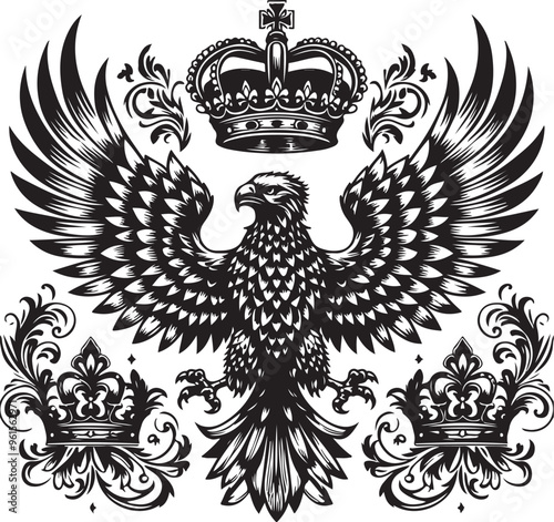 eagle crown vector art,graphics eagle crown icon set,vintage illustration eagle crown clipart,vector eagle crown flat style artwork design