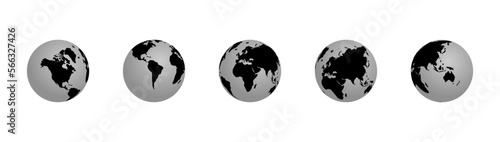 Earth globe icon set with continents. Vector EPS 10
