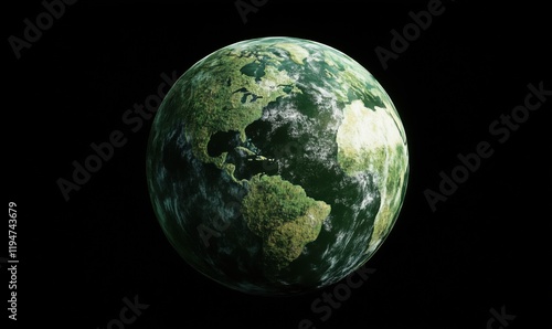 Earth globe representation showcasing lush green continents and blue oceans, emphasizing environmental beauty and sustainability