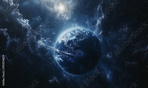 earth, planet, space, universe, star, galaxy, cosmos, celestial, astronomic, night, dark, blue, white, light, glow, cosmic, distant, huge, background, abstract, aethereal, mystical, wonder, infinite, starry, sky, deep, bright, nebula, dust, astronomy, exploration, awe, immensity, perspective, grandeur, beauty, mystery, serenity, calmness, dream, imagination, science, fantasy, art, digital, illustration