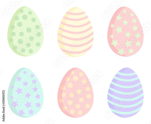 Easter eggs in pastel colors set. Collection of cute Ostara colored egges flat style illustration. Decorative elements