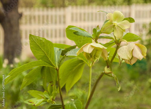 hellebore, christmas rose, plant, botany, gardening, garden, hobby, grow, cultivate, decorative, symbol, bush, stem, bud, flower, bloom, blooming, nobody, medicine, poisonous, march, april, spring, flowerbed, fence