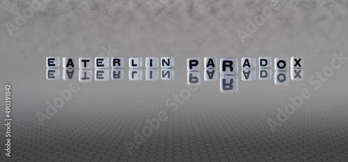 eaterlin paradox word or concept represented by black and white letter cubes on a grey horizon background stretching to infinity