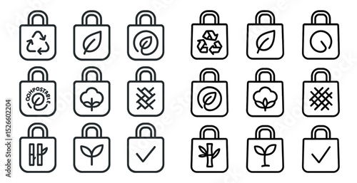 Eco friendly bag icons for sustainable design and packaging concepts
