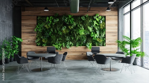 eco, style, interior design, modern, open space, office, grey, table, chair, wall, sustainable, green, environmentally friendly, natural, workplace, contemporary, minimalistic, industrial, natural light, greenery, earthy, sleek, airy